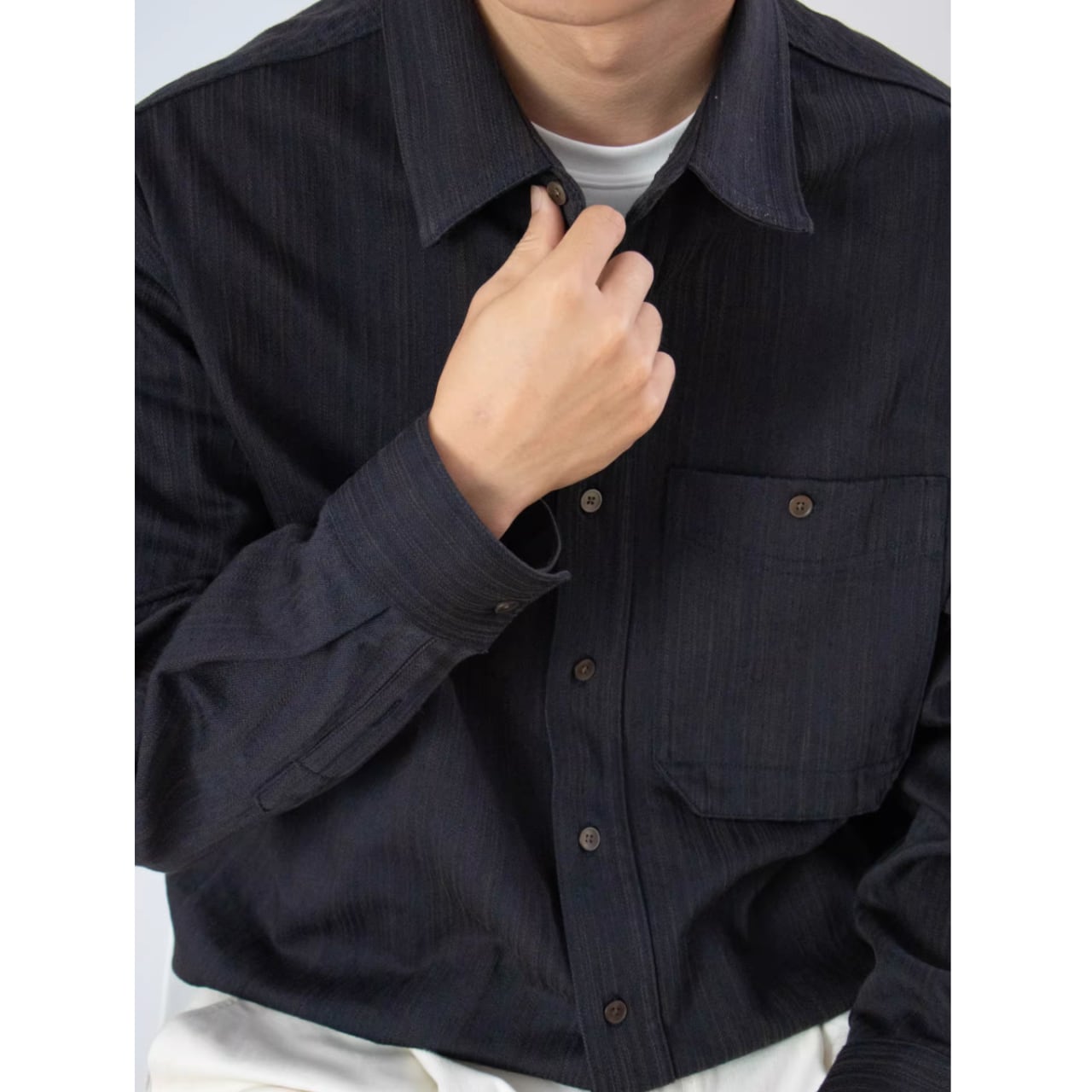 胸元のパッチポケットがアクセントになり、普段使いしやすいのもポイント。一枚着としてはもちろん、羽織りとしても活躍するので、季節の変わり目に重宝します。