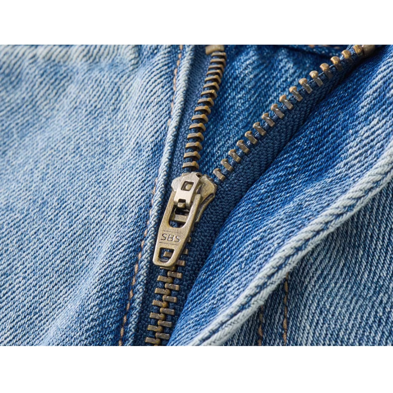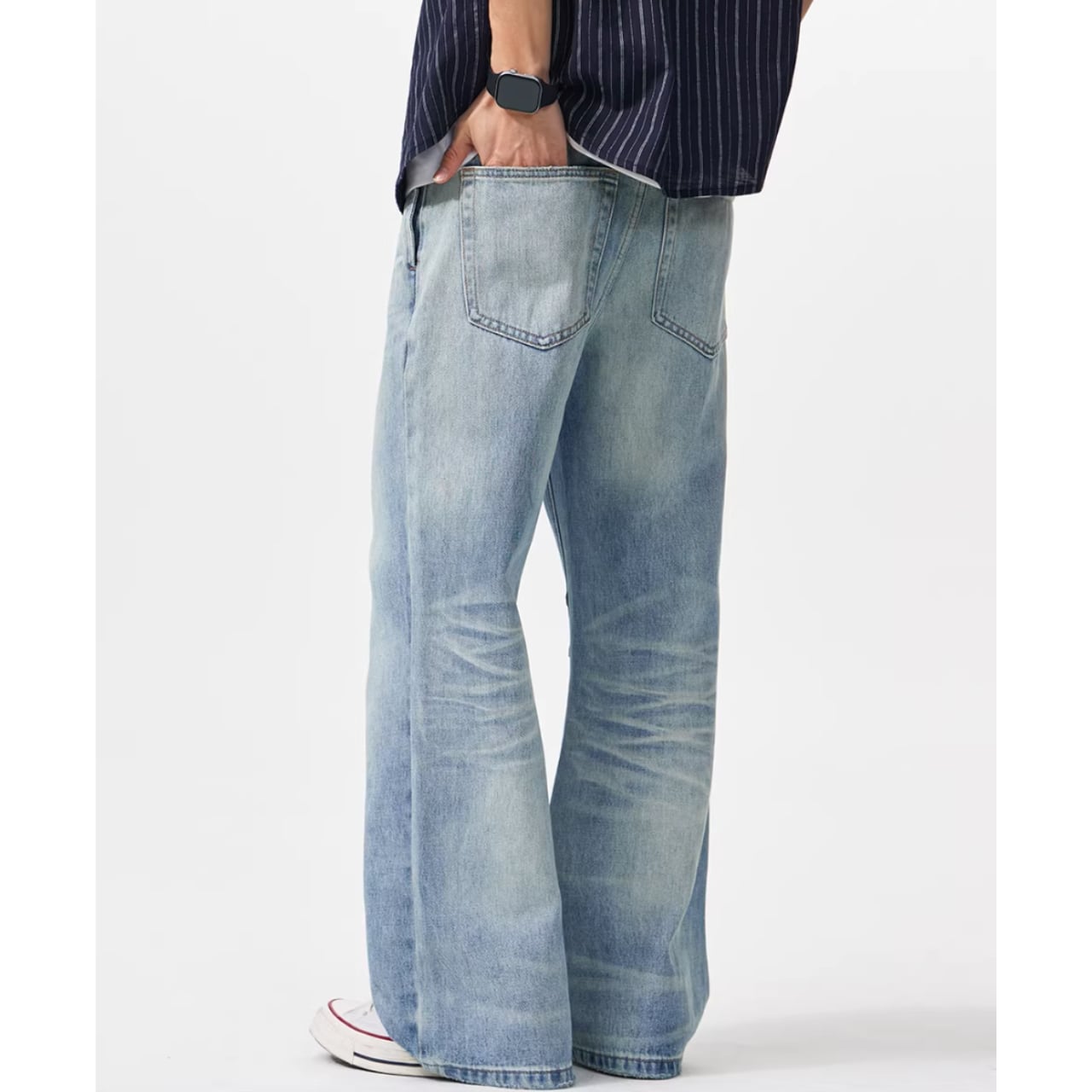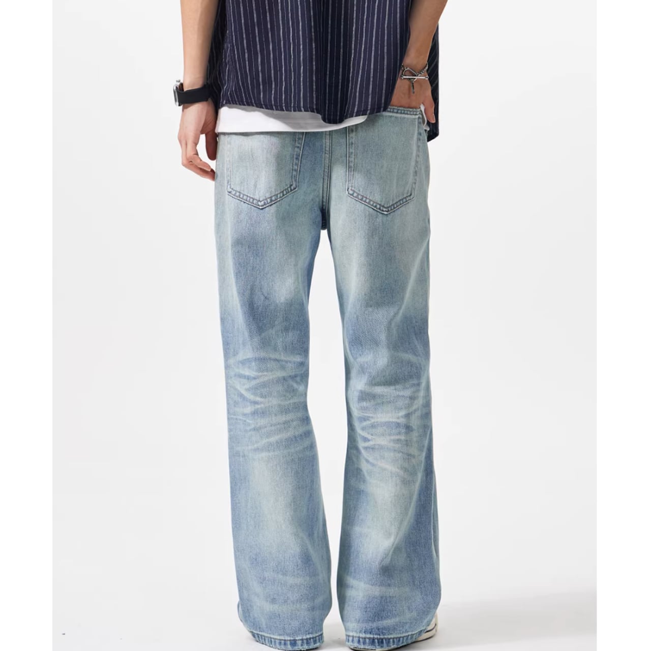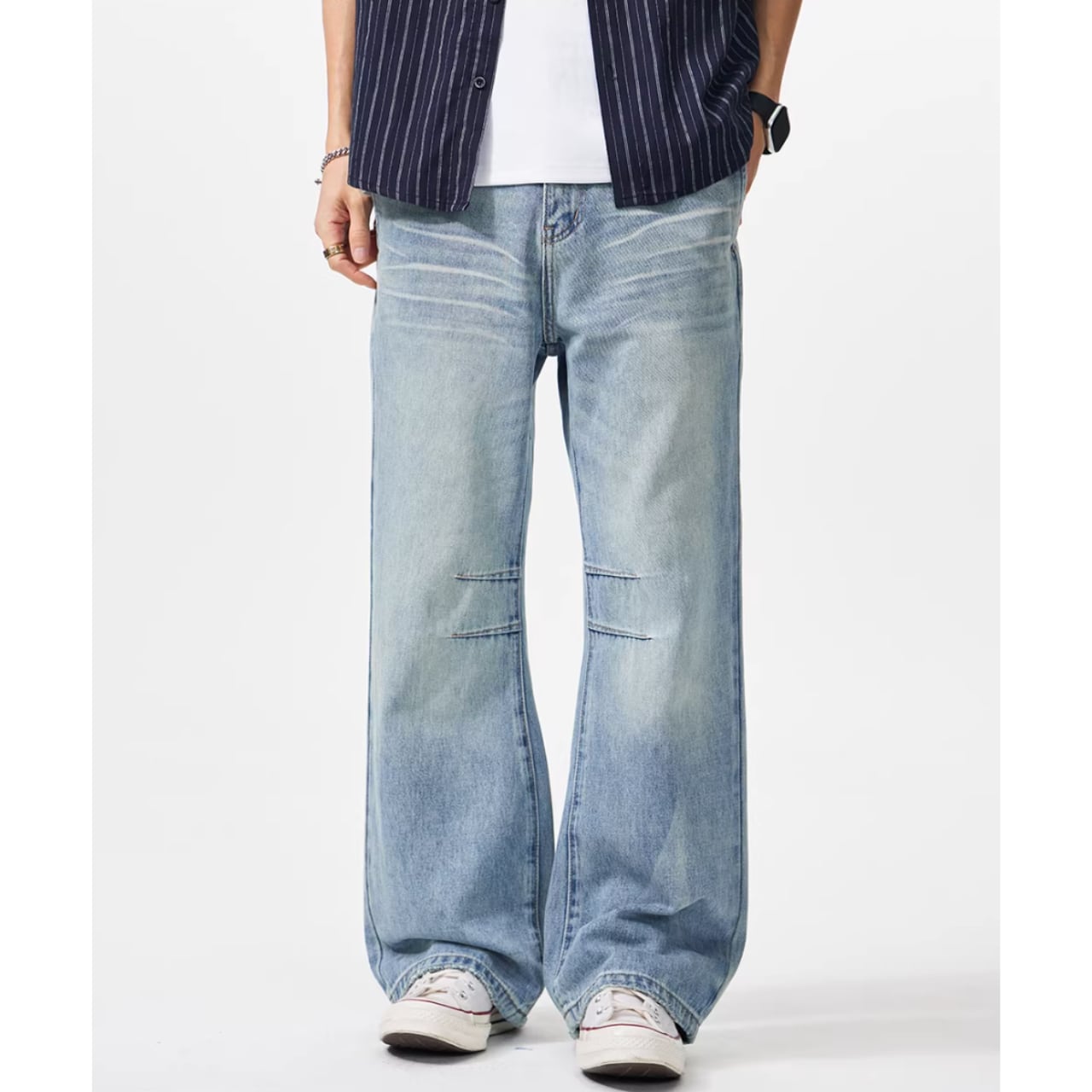 特徴的なパッチワークが目を引くワイドレッグデニム。ゆったりとしたシルエットで、リラックスした着心地が魅力です。