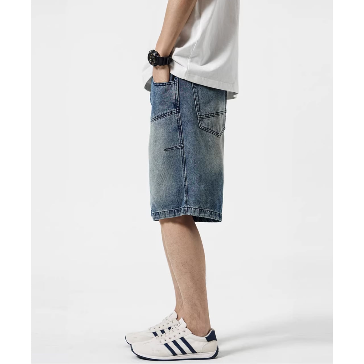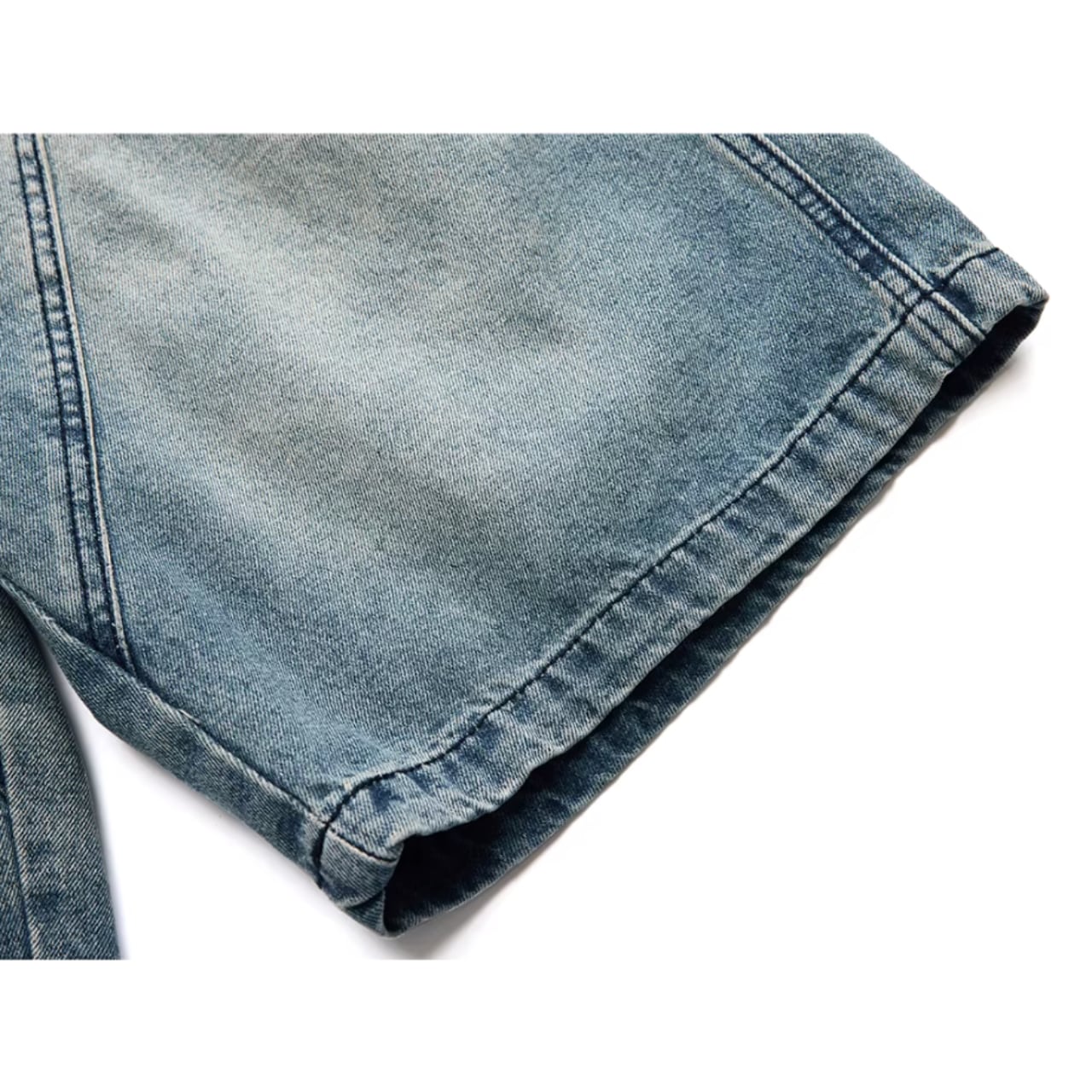 カジュアルな着こなしに最適なハーフ丈デニムショートパンツ。ワイドなシルエットで動きやすく、リラックスしたスタイルを演出します。デイリーユースはもちろん、アウトドアシーンにもマッチする万能アイテムです。