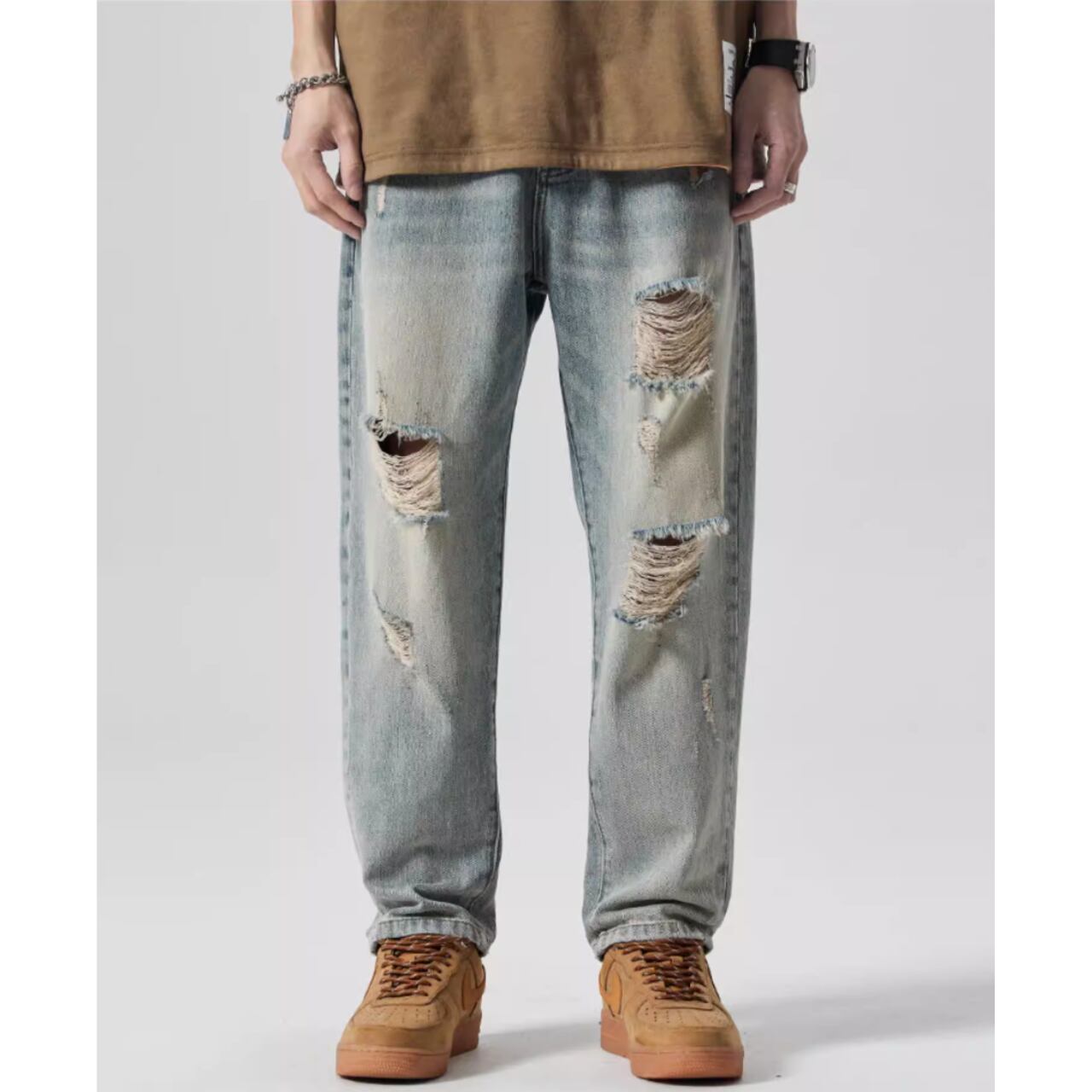 テーパードスタイル ダメージジーンズ af0507