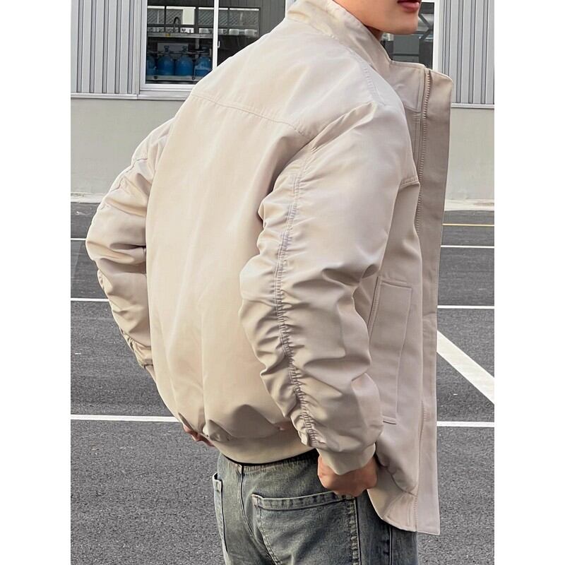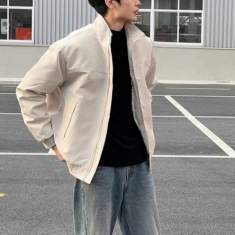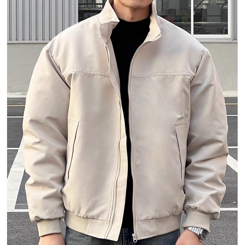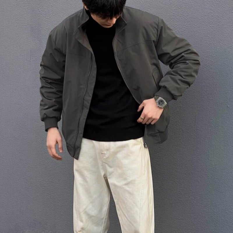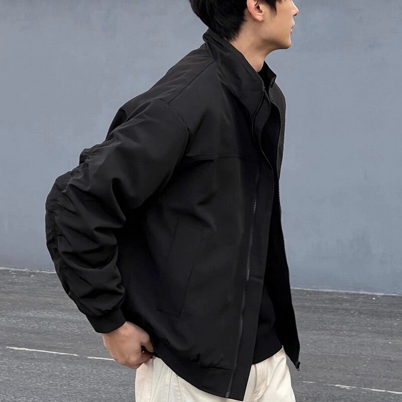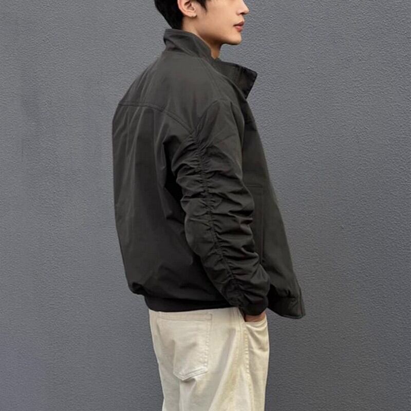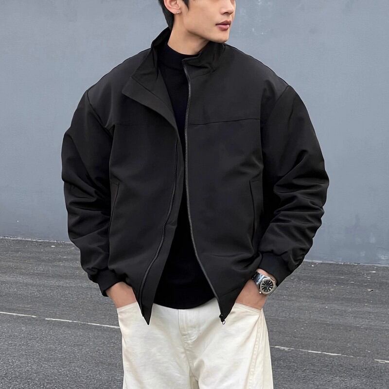 ミニマルなデザインが魅力のスタンドカラージャケット。程よいボリューム感とシンプルなシルエットで、都会的なスタイルを演出。