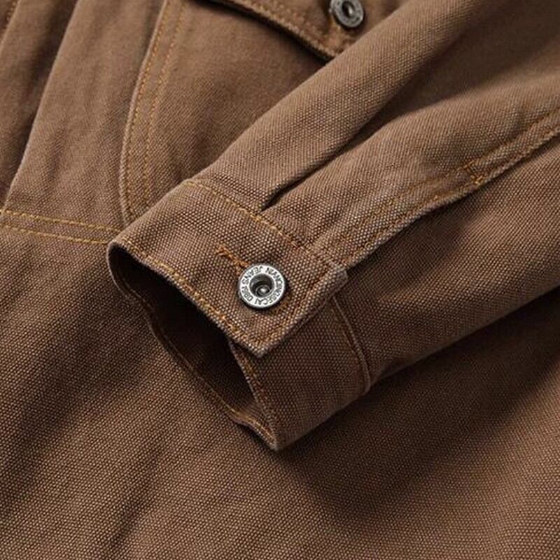 ワークテイストのディテールが魅力で、カジュアルからキレイめスタイルまで幅広く活躍します。程よい厚みの生地を使用し、季節を問わず快適に着用可能。
