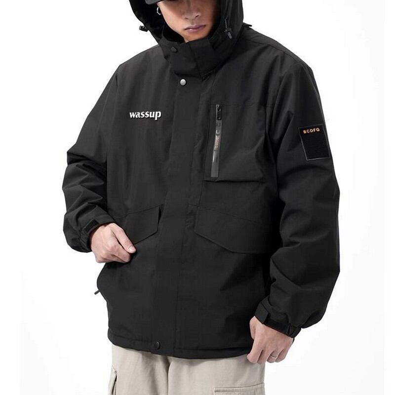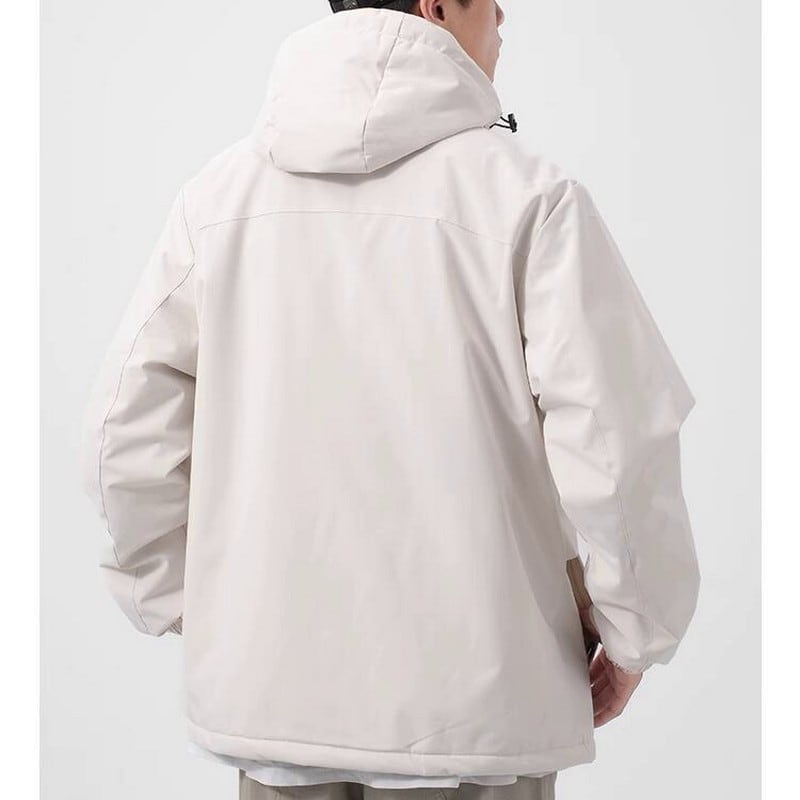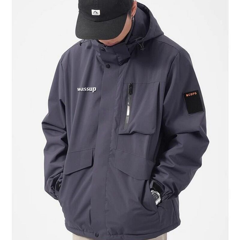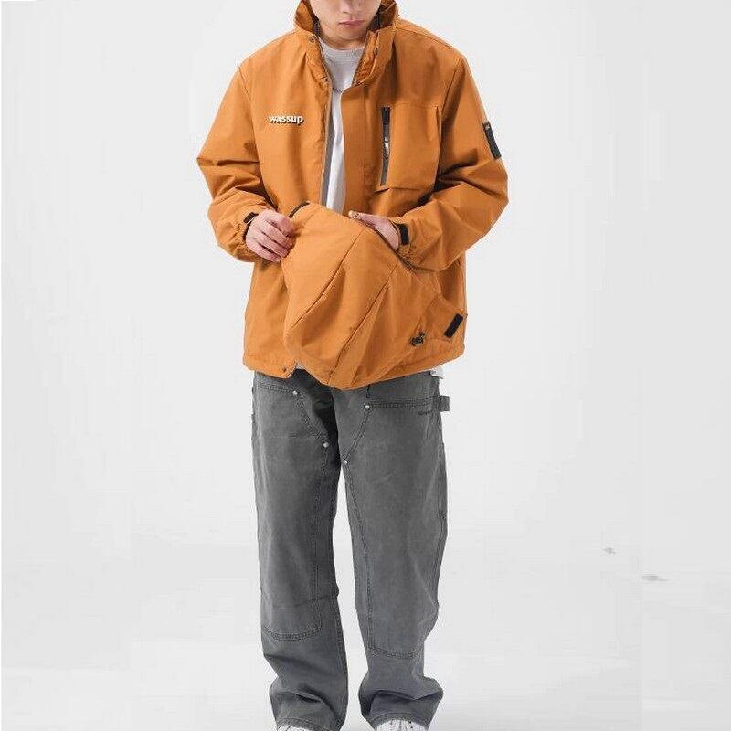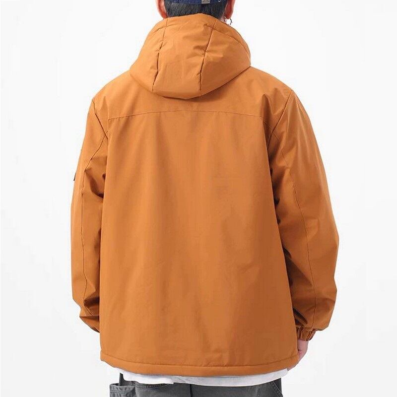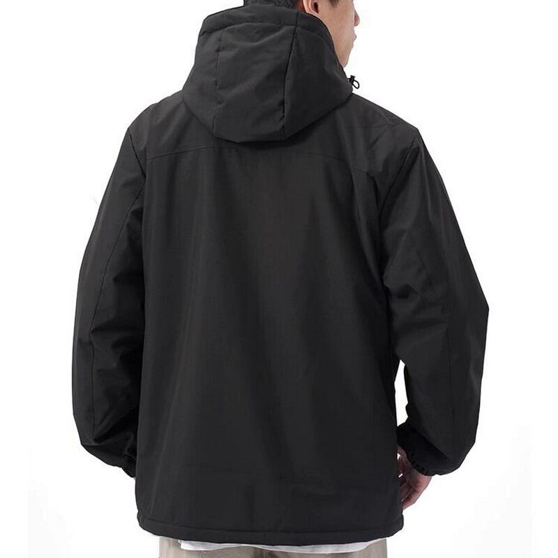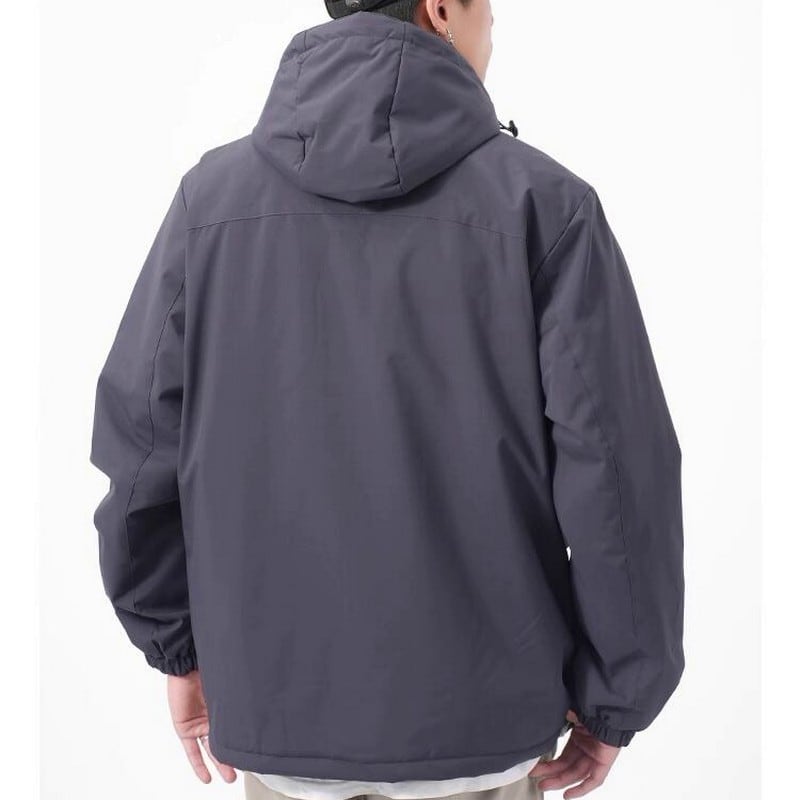 軽量で動きやすいフード付きジャケット。シンプルなデザインで、日常使いから軽い運動まで幅広く活躍します。