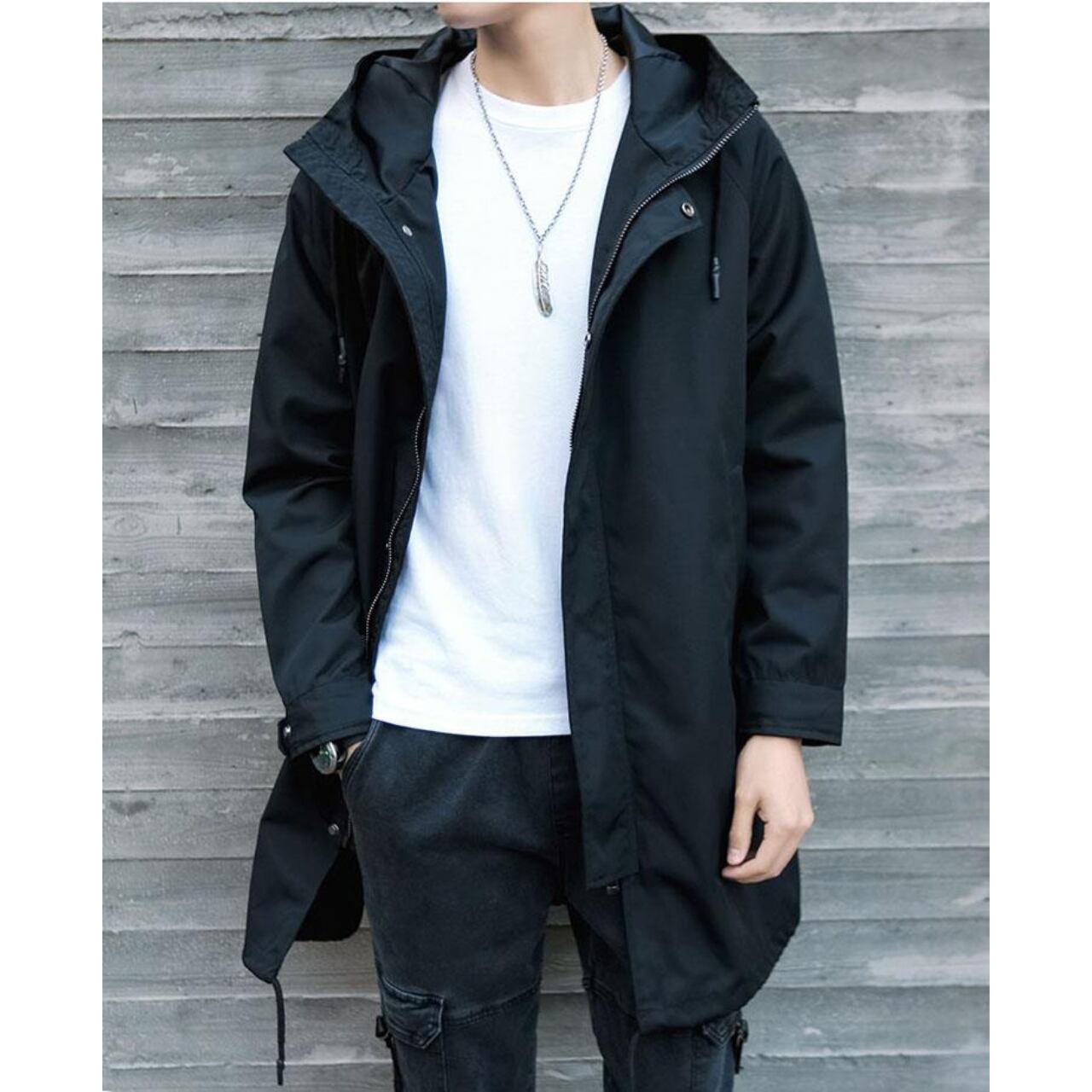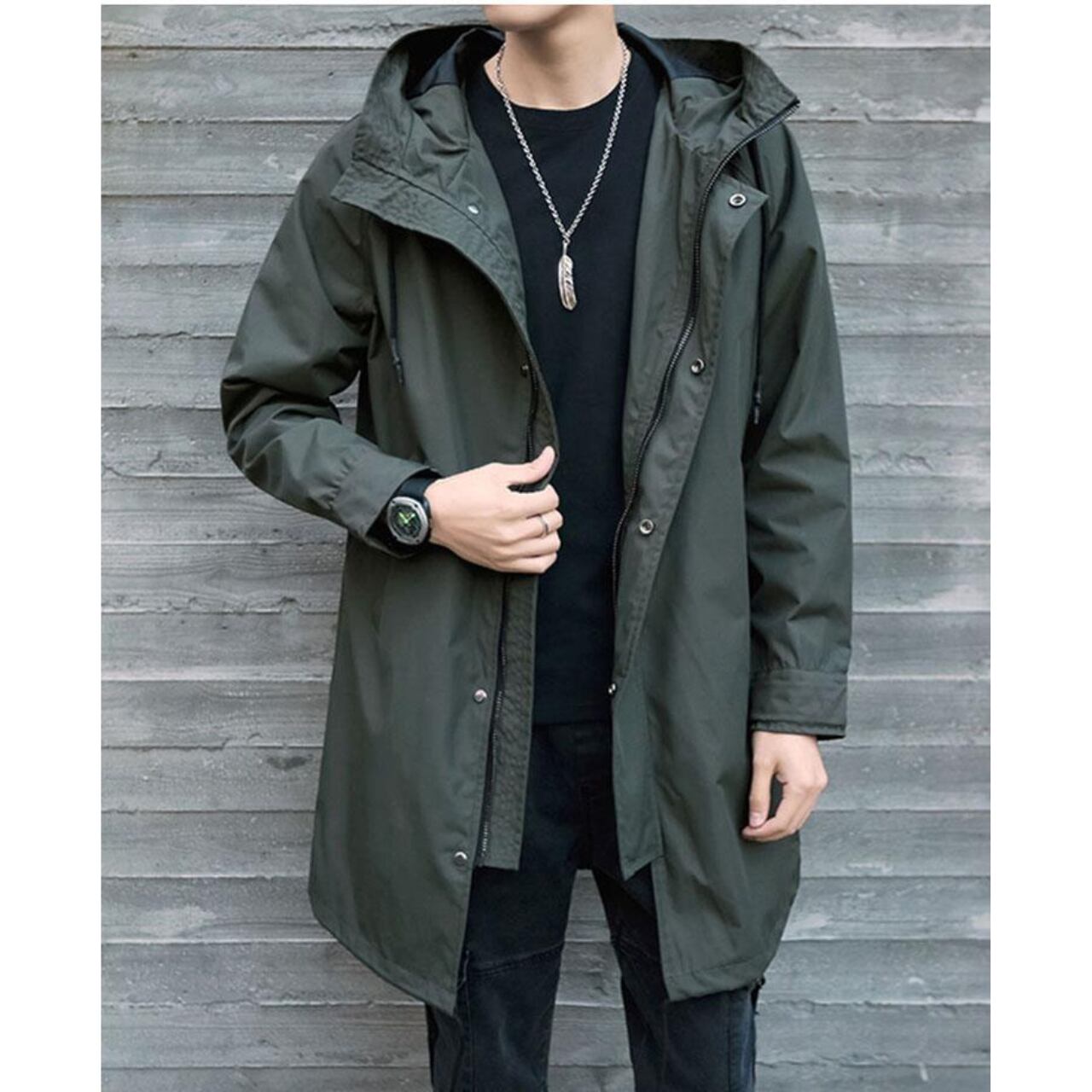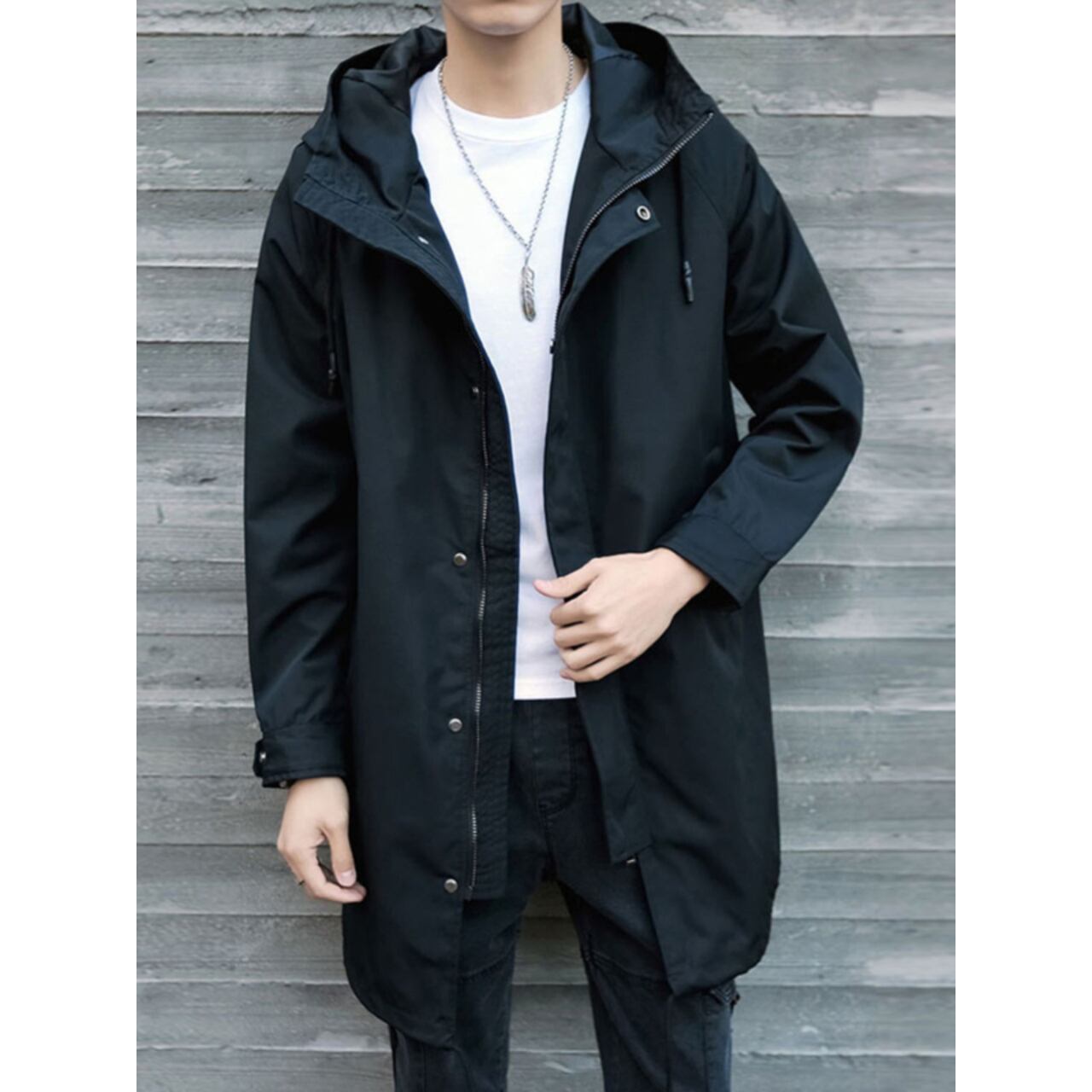 スナップボタン フード付きコート af0131