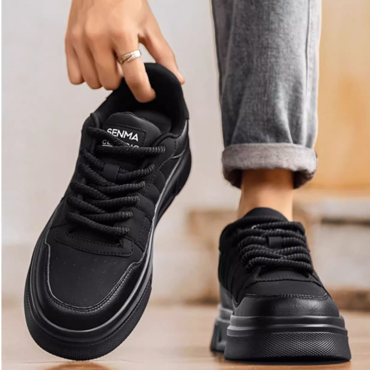 パンチングデザインがアクセントになり、カジュアルなコーディネートにぴったり。